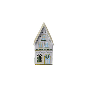 The iron Tall House Light Box is carefully crafted with holes that allow candlelight or fairy lights to gently glow from within, creating an enchanting ambiance.