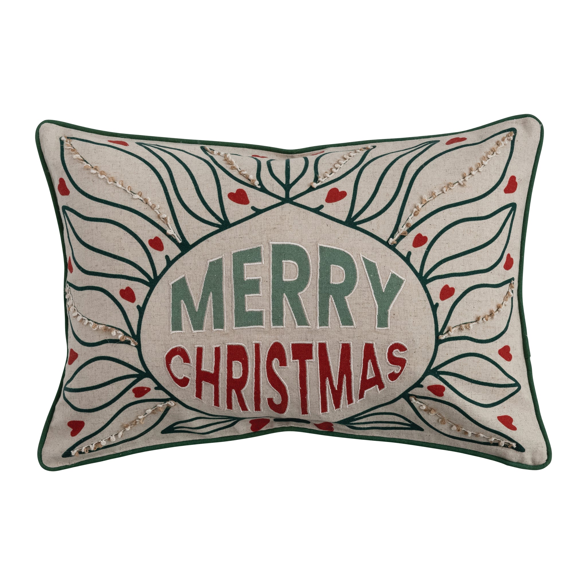 Add a little fun to your holiday décor with our printed cotton lumbar Merry Christmas Pillow.
