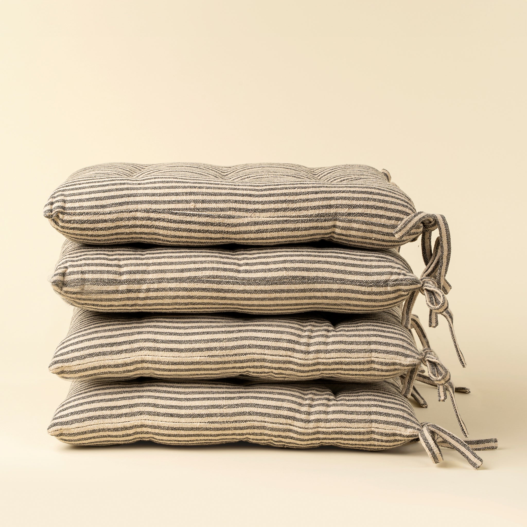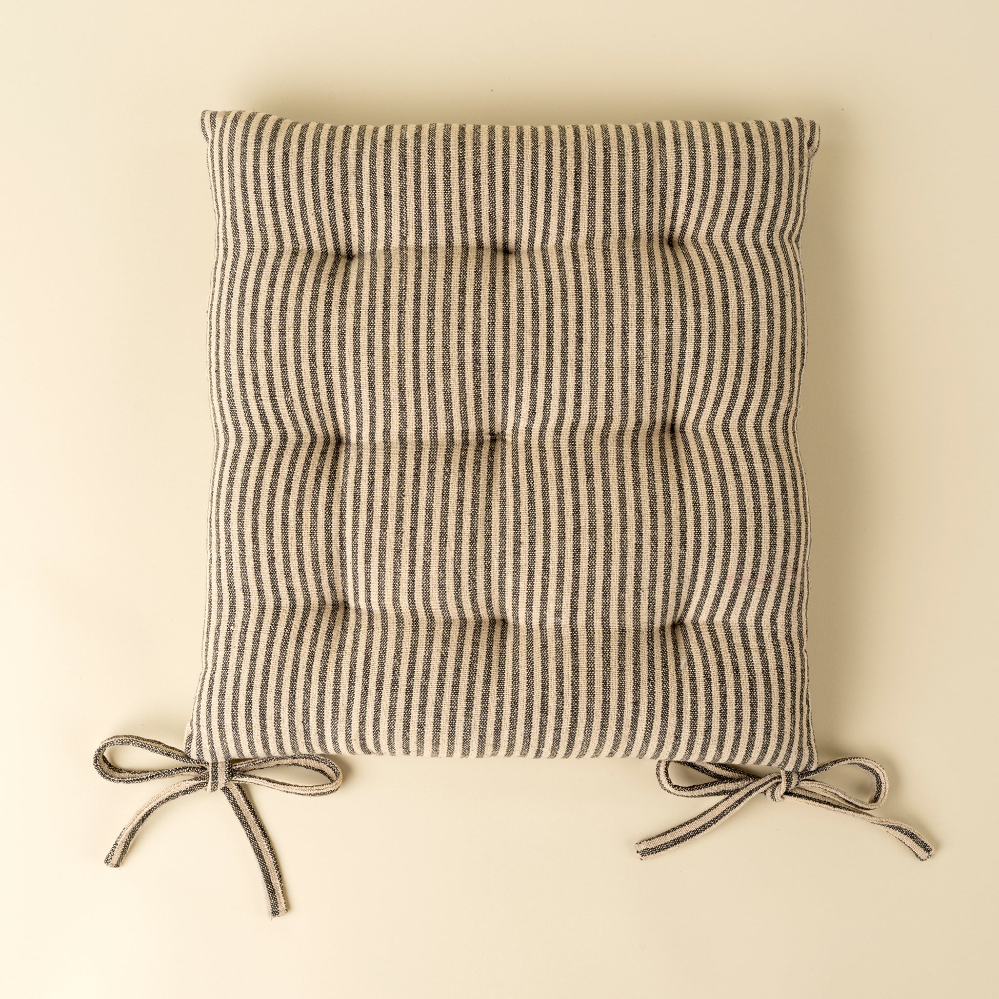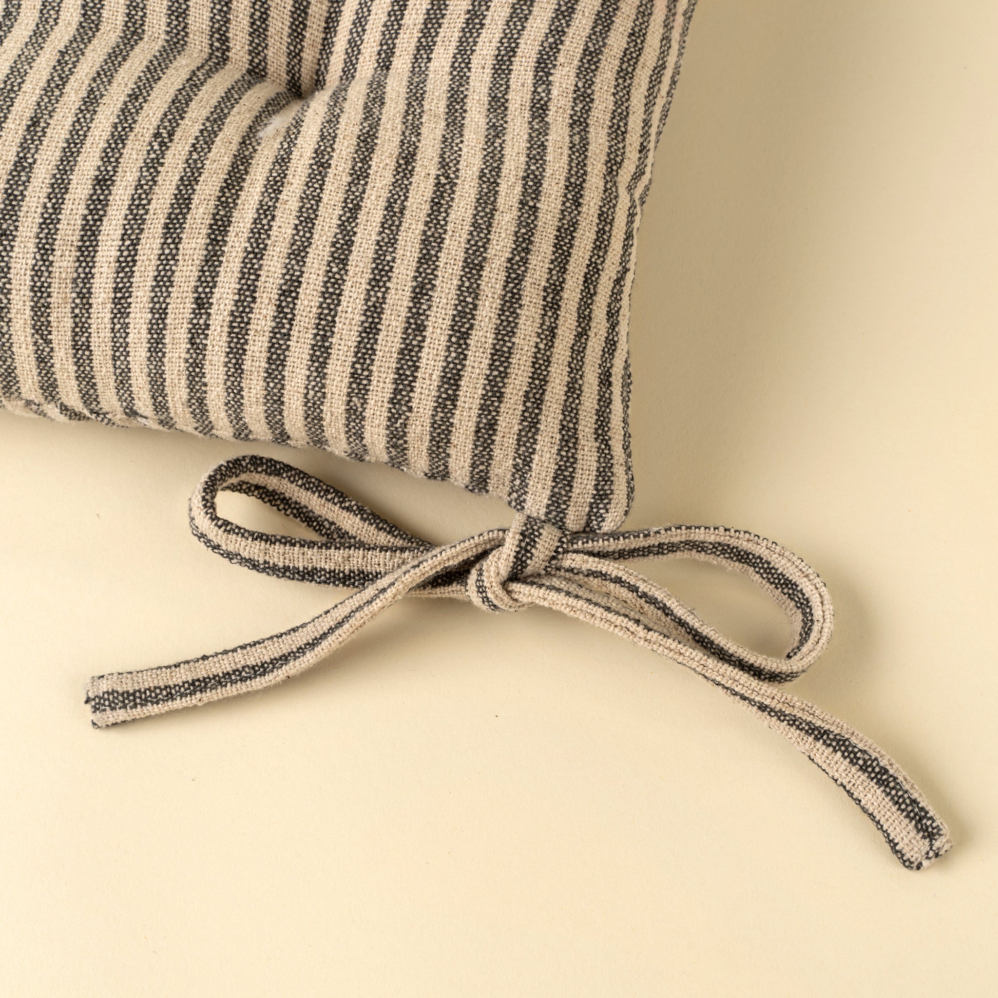 The Morris Stripe Chair Pad brings comfort and style to any seating arrangement. Crafted using handloom, this charcoal stripe cushion with blends timeless elegance with traditional craftsmanship. Perfect for dining chairs, benches, or adding comfort to outdoor seating, it enhances your space with artisanal charm.