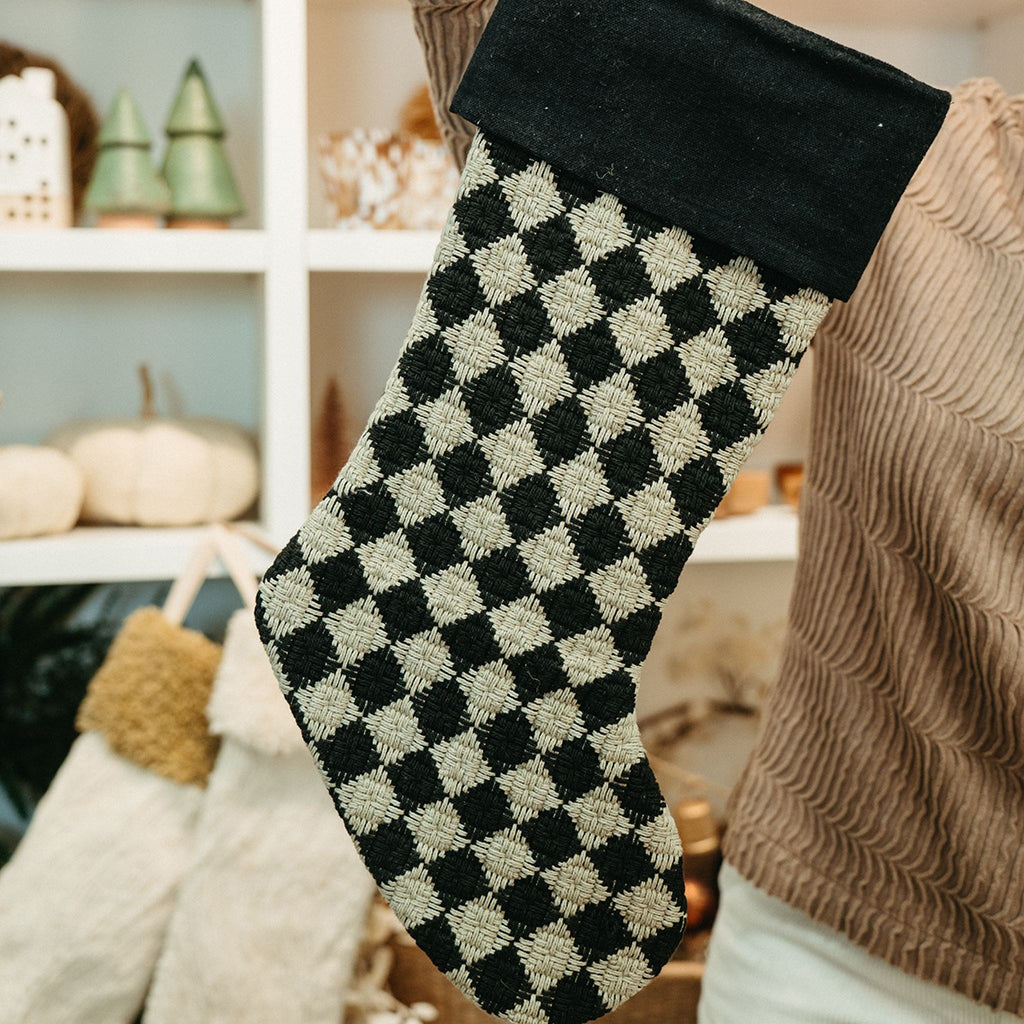 Featuring an intricate thick tactile weave to create the checkered pattern, the Check Weave Stocking brings elevated appeal to your holiday decorating and is destined to become a lasting family heirloom. Ready to be filled with gifts, we hang it from the mantel, the end of the bed, the stair rail, or shelving.