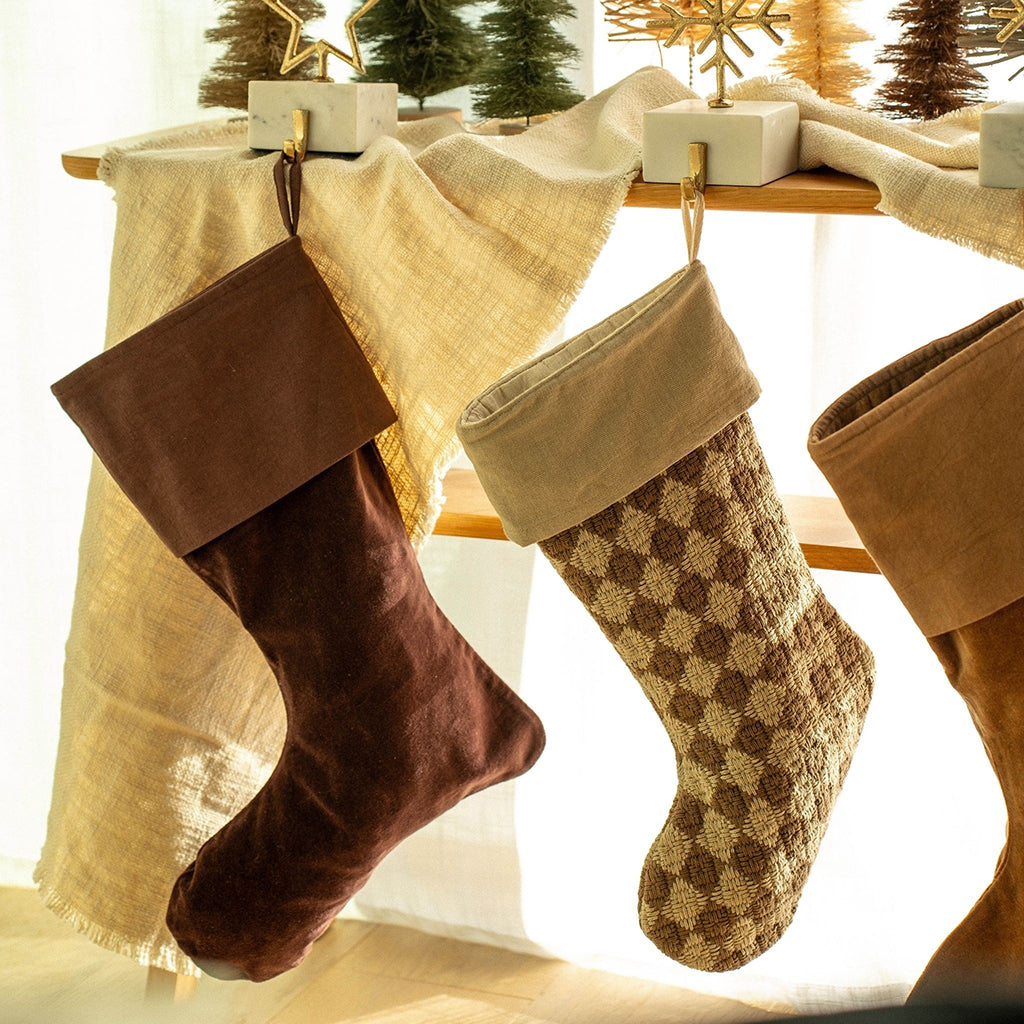 Featuring an intricate thick tactile weave to create the checkered pattern, the Check Weave Stocking brings elevated appeal to your holiday decorating and is destined to become a lasting family heirloom. Ready to be filled with gifts, we hang it from the mantel, the end of the bed, the stair rail, or shelving.