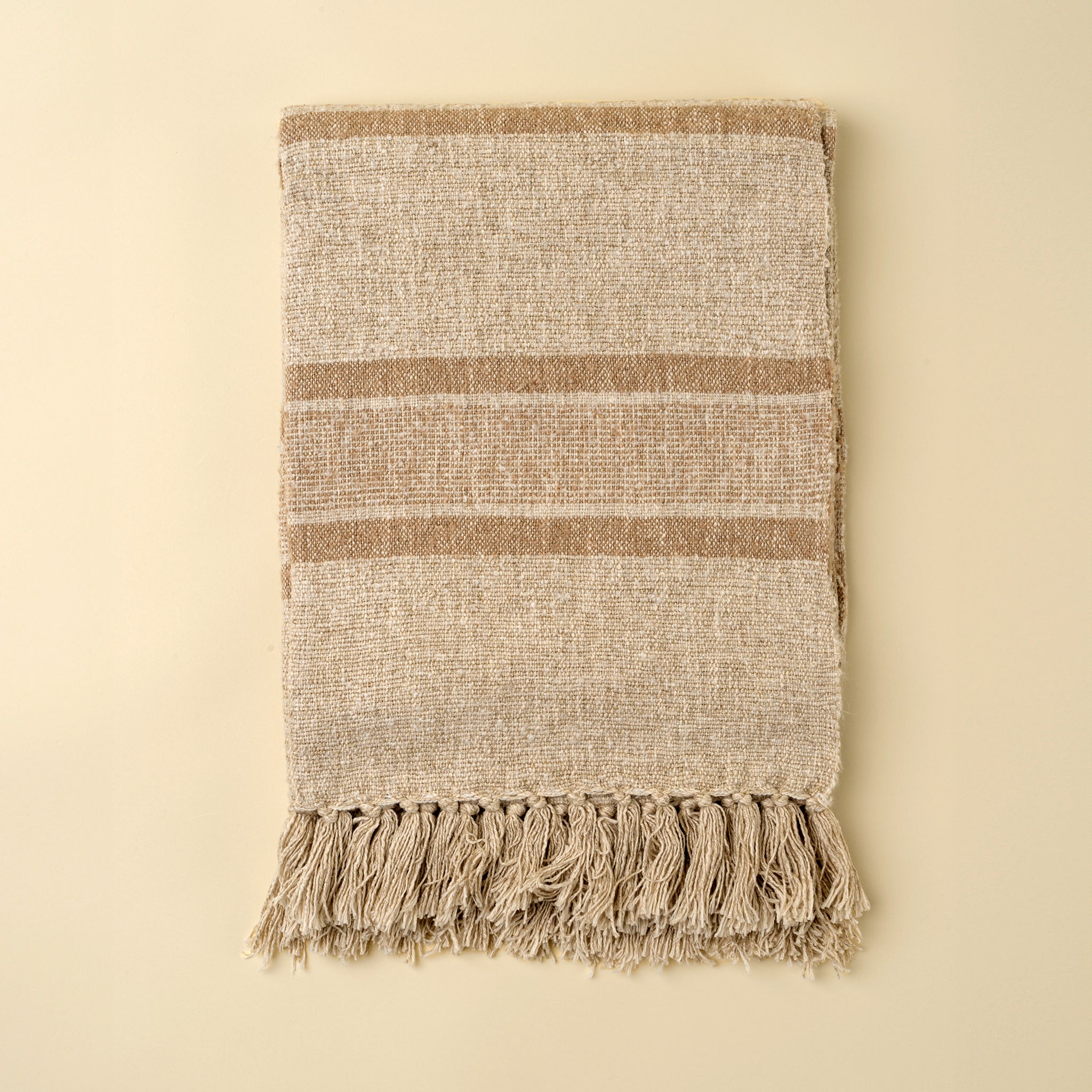 Effortlessly stylish, the Tulum Striped Throw brings relaxed elegance to any space. Handcrafted with a soft blend of cotton, linen, and viscose, this blanket throw features classic stripes and a cozy, textured weave that feels both elevated and inviting. Finished with hand-knotted fringe, it offers just the right touch of beachy charm.